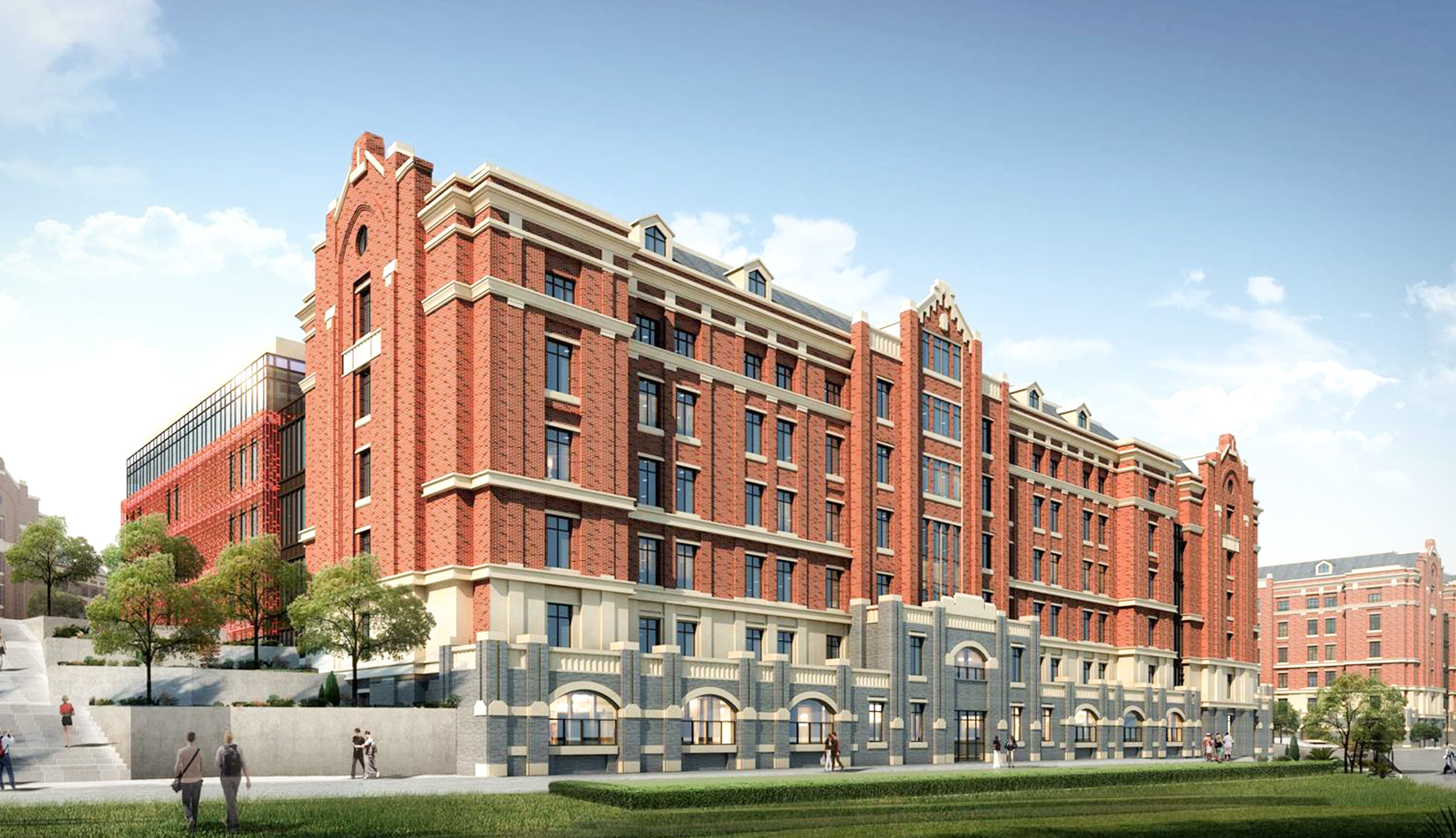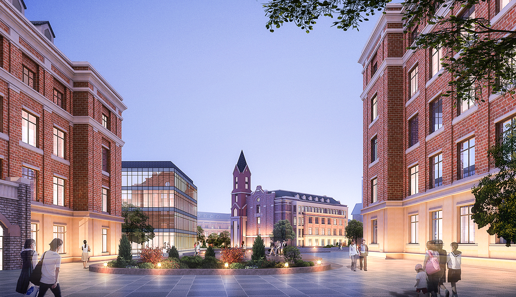 本項(xiàng)目位于中德生態(tài)園東側(cè),東側(cè)、南側(cè)與九中相鄰,在設(shè)計(jì)時(shí)充分考慮周邊建筑現(xiàn)狀,采用紅磚灰頂?shù)挠⑹斤L(fēng)格作為建筑立面。紅瓦灰頂,相互借勢(shì),打造中德門戶建筑。