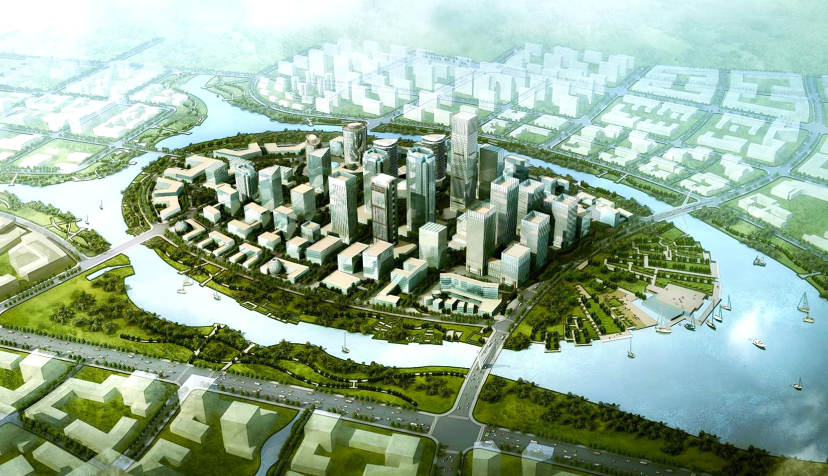 軟件科技城隸屬北岸城區(qū),位于白沙灣底,處在市域和北岸城區(qū)的地理幾何中心和空間中樞位置。