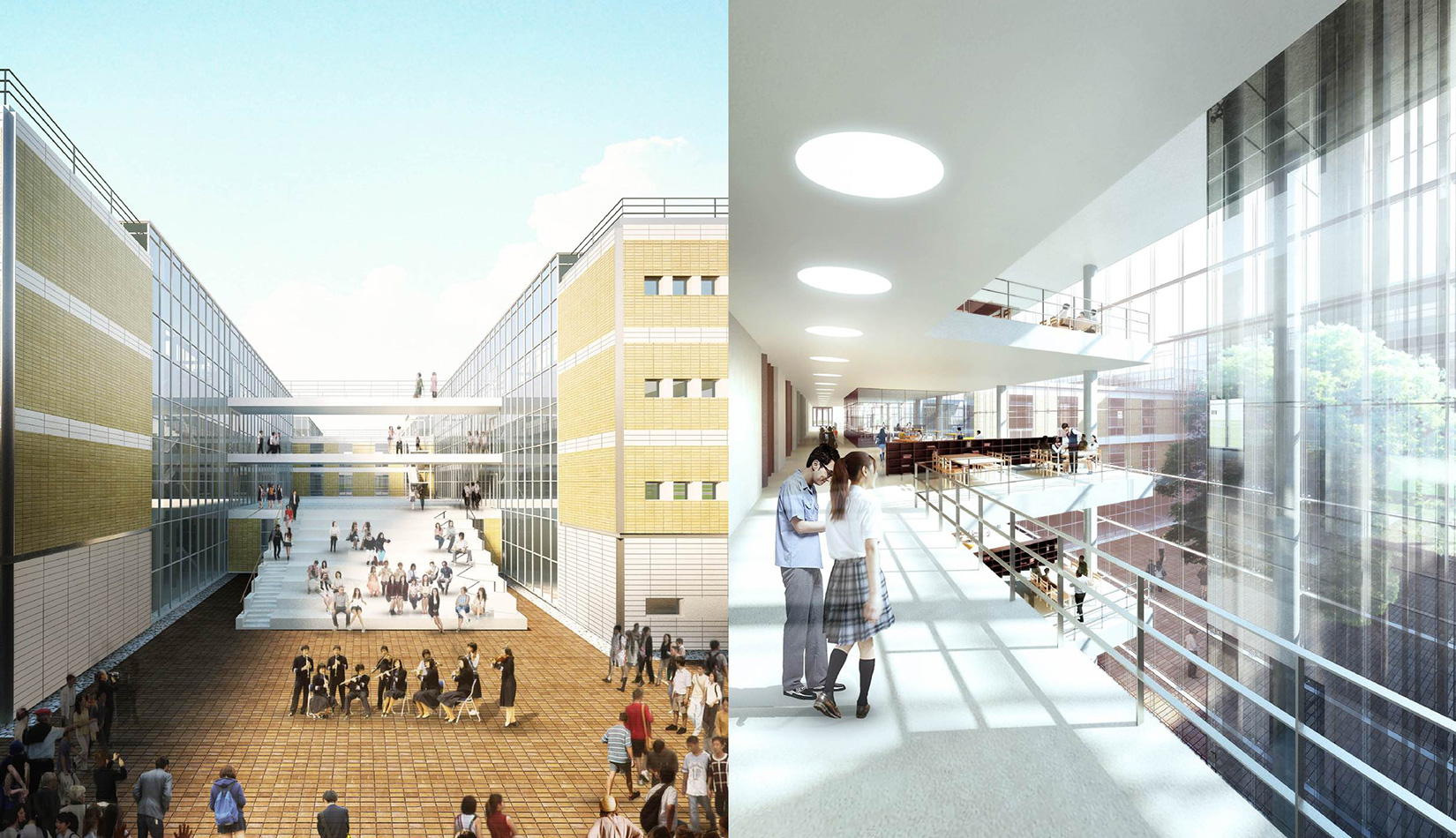 從基地及周邊地區(qū)的城市環(huán)境出發(fā),探索建筑在城市肌理、功能分區(qū)、教育建筑形象等方面的形態(tài)生成因素,力求創(chuàng)造一個鮮明個性、現(xiàn)代、高效、體現(xiàn)教育建筑特色的城市建筑形象,為整個地域帶來嶄新的城市肌理。