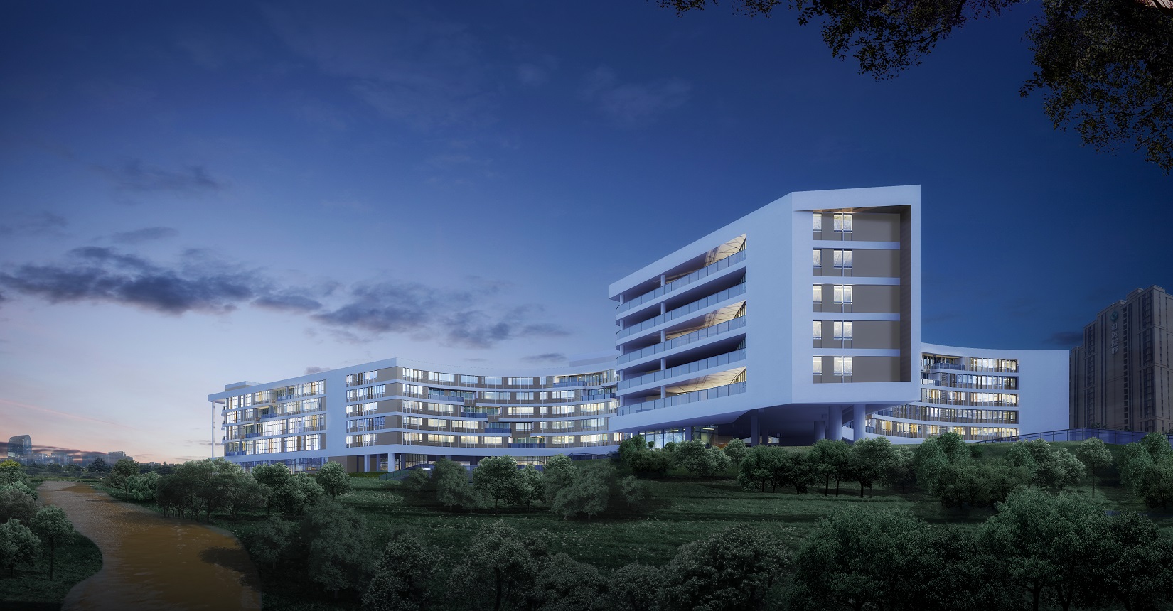 考慮到用地形狀、使用功能和日照等條件因素的影響,總平面布局以“生長”為主題,寓意生命向上生長的力量,生生不息,無限伸展。枝杈無限分支向上生長,象征著無限的力量與生機。而中醫(yī)的健康講究氣血通暢,循環(huán)往復,從而衍生出“五行”相輔相成的設計理念。根據五行方位確定五行主題。將金水湖與建筑相融合,金水湖為“水”,輔“金”“木”“火”“土”四個主題廣場。